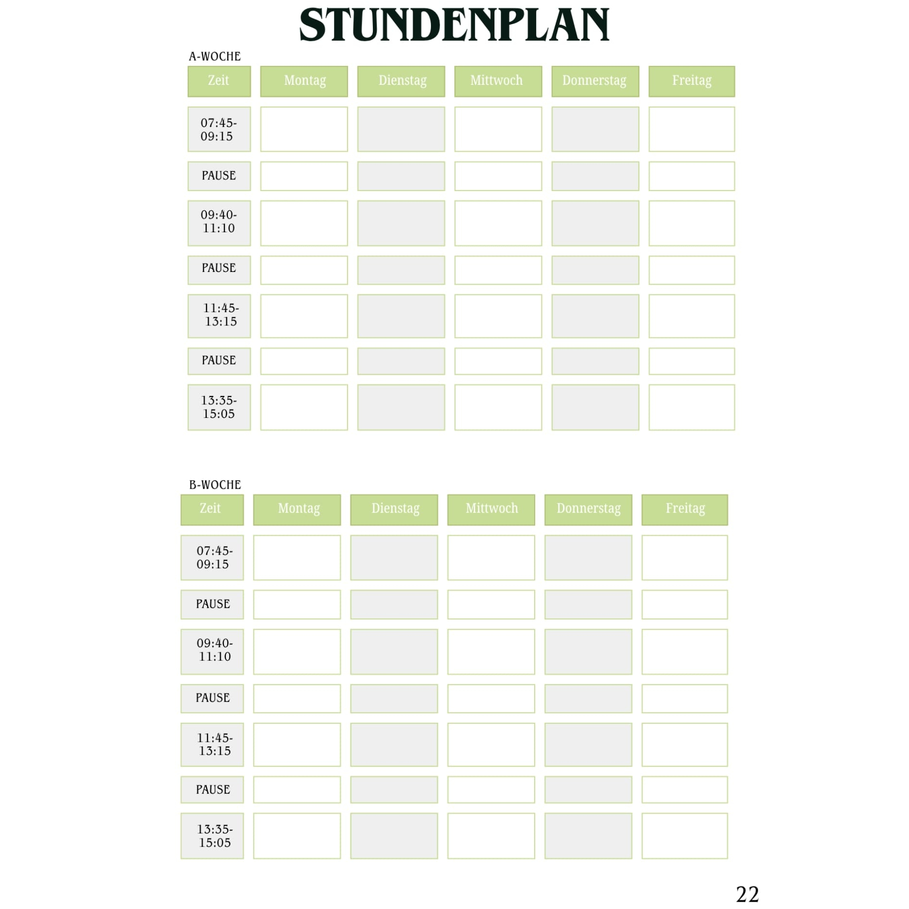 Platz für den Studenplan mit A-Woche & B-Woche |
