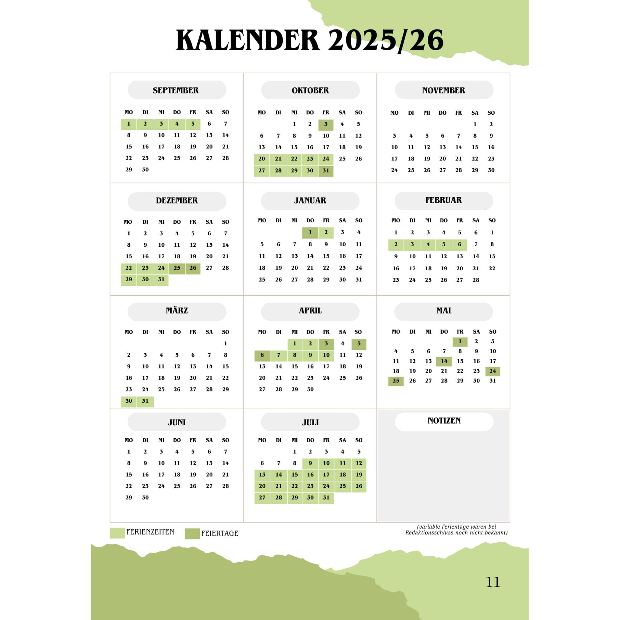 Mit Anfang des neuen Schuljahrs ist der Schulplaner für das Jahr 2025/26 nicht mehr verfügbar und der nächste Schulplaner wird erst wieder für das Schuljahr 2026/27 existieren. Wir bedanken uns bei jedem, der ein Exemplar gekauft hat!